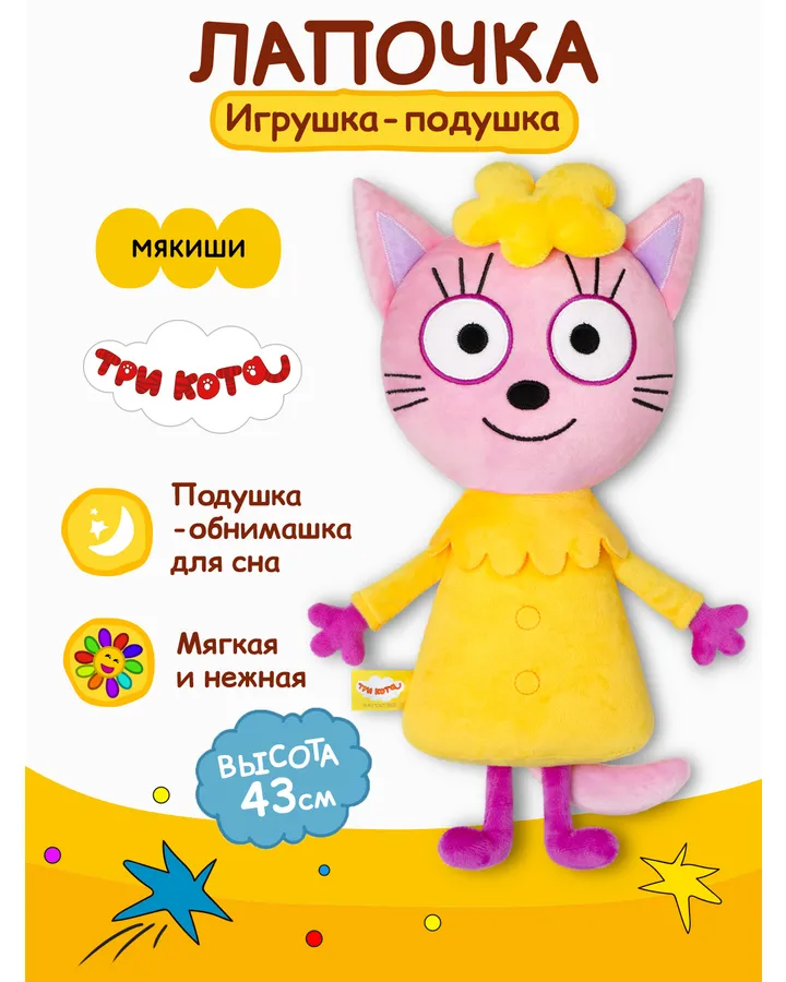 Игрушка-подушка Мякиши детская мягкая большая Три кота Компот и море приключений