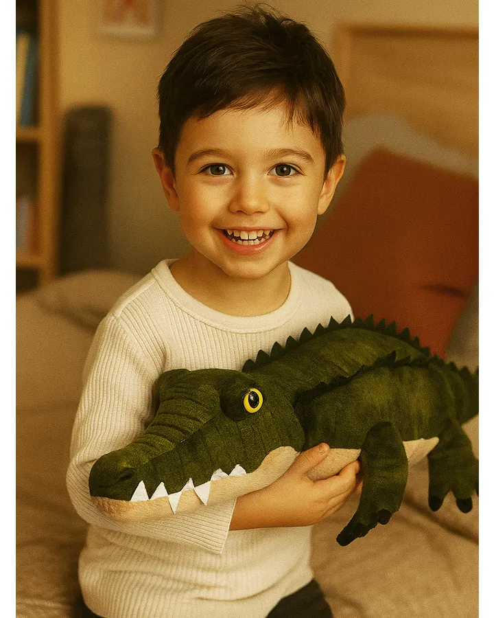 Да, наш плюшевый крокодил абсолютно безопасен для малышей. Все детали надежно закреплены, а материалы прошли сертификацию.