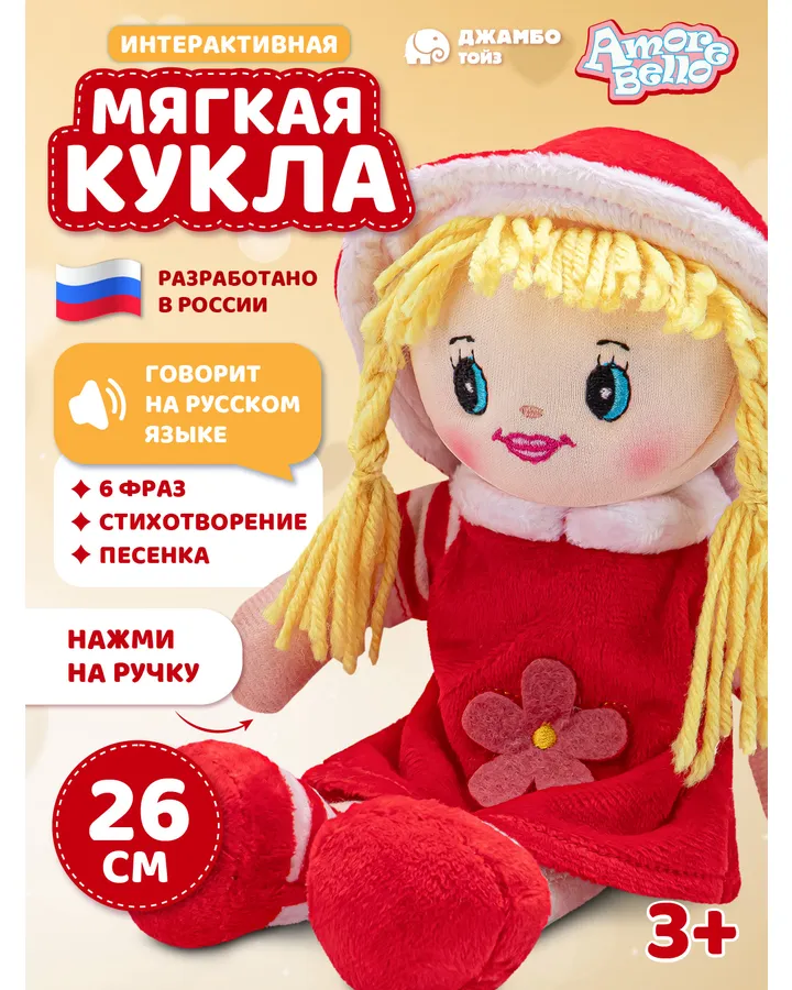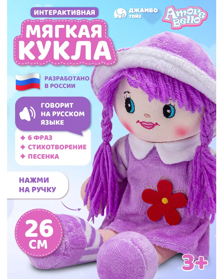 5Мягкая игрушка AMORE BELLO куклаХорошенькая куколка, маленькая, для ребёнка 2-х лет подходит, если вынуть звуковое устройство.