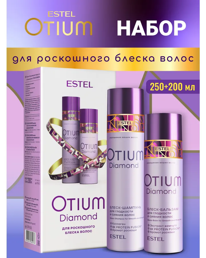 5Косметический набор ESTEL otium diamond для гладкости и блеска волос 250+200 млДавно пользуюсь бредом ESTEL,я очень довольна