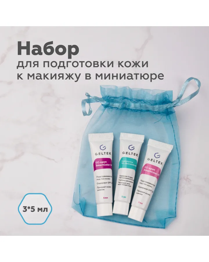 5Набор миниатюр косметики GELTEK для подготовки кожи к макияжу 3 шт по 5 млВозьму в дорогу в отпуск. Выглядит достойно.