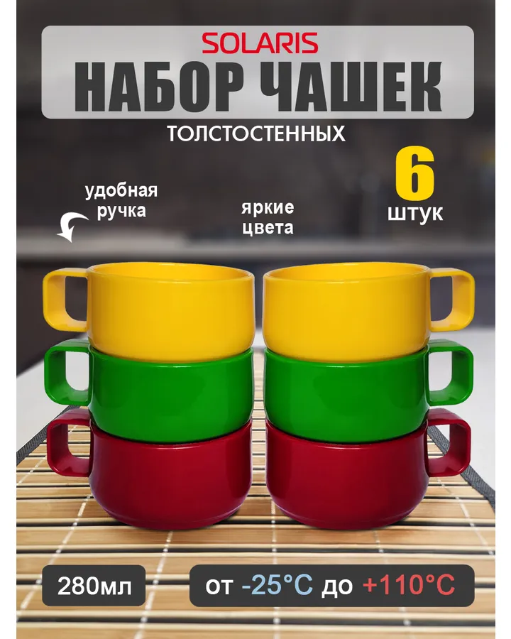 Набор посуды Solaris 6 толстостенных чашек 0.28 л
