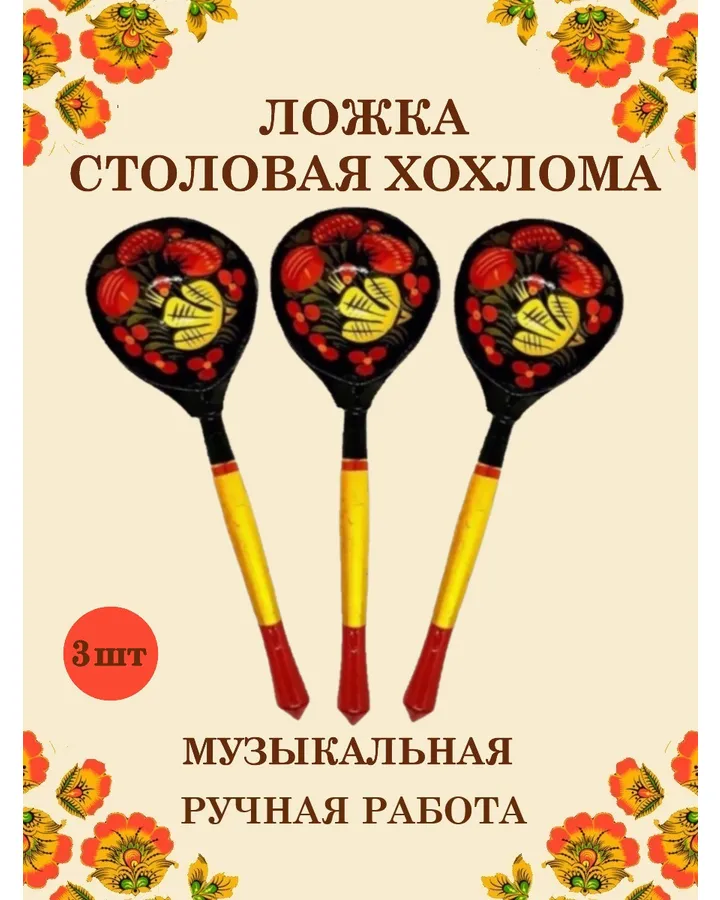 Ложка деревянная столовая Хохлома Оптом музыкальная расписная 3 шт.