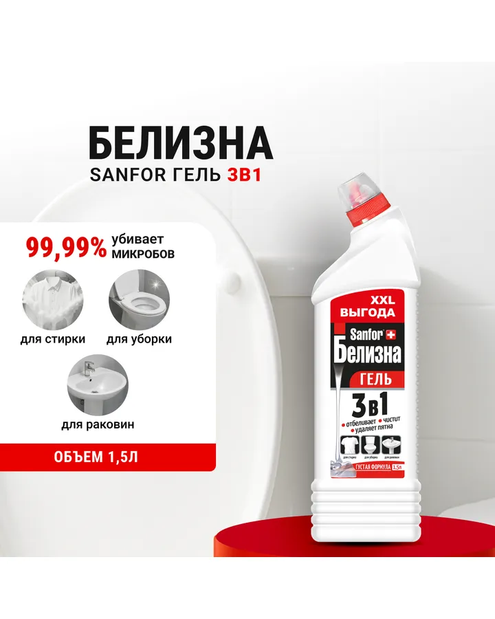 Чистящее средство Sanfor 1000 мл для туалета 2 упак.Самое лучшее средство для очистки унитаза от ржавчины и налета. Рекомендую. А главное не едкий запах. Спасибо;)