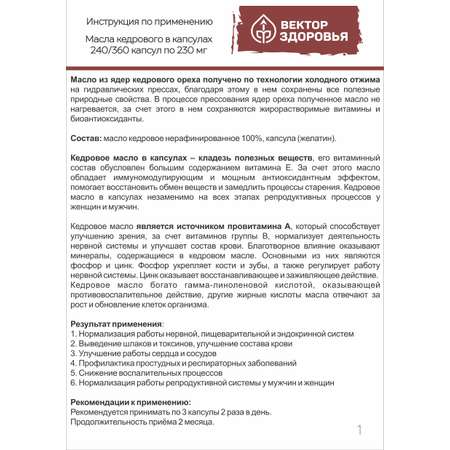 Масла растительные Алтайские традиции Масло кедровое 240 капсул