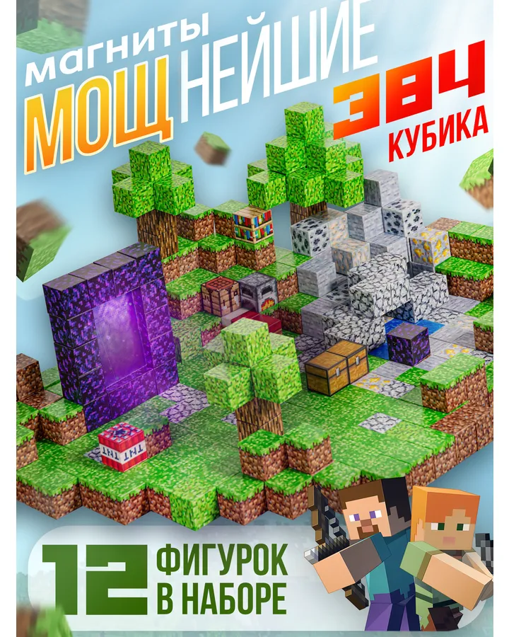 Конструктор BAZUMI Minecraft с фигурками кубики майнкрафт магнитный 384 дет.