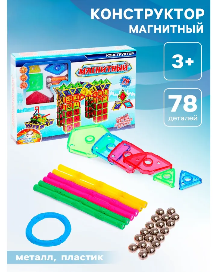 Ребёнок очень рад, занимательный магнитный конструктор. Очень яркий, хорошо держат магнитики