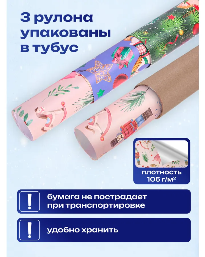 Упаковочная бумага Золотая сказка для новогодних подарков в рулоне набор 3 штуки