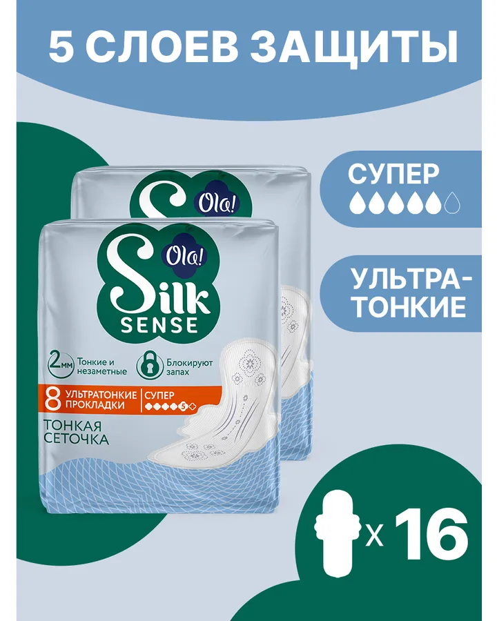Ночные прокладки Ola! Ultra Super ультратонкие Шелковая сеточка 8x2 уп.16
