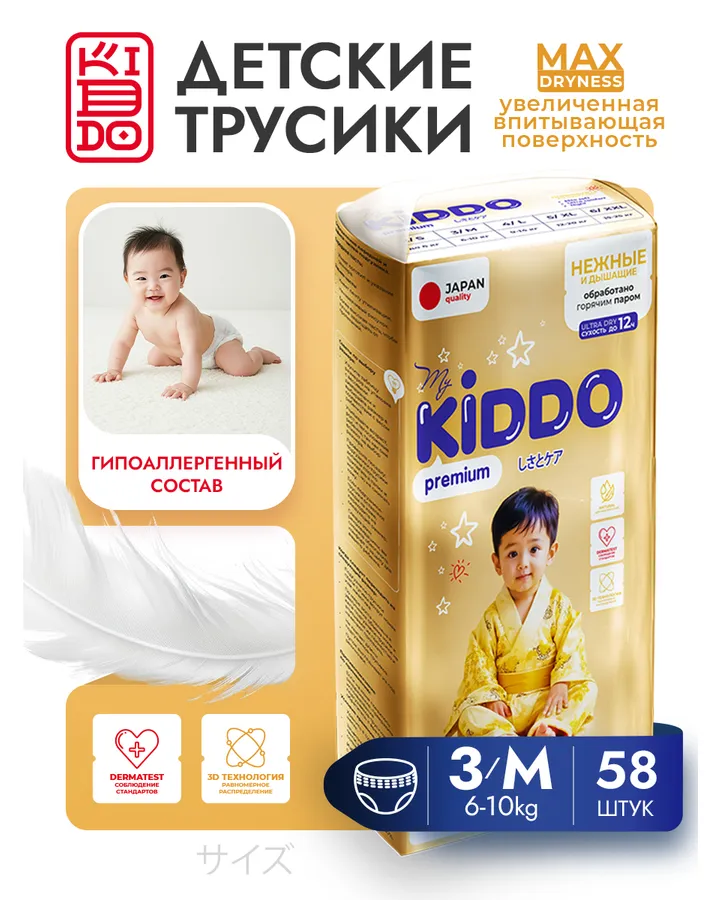 Трусики Kiddo Premium XL (12-20 кг) 50 шт.Сомневалась покупать или не покупать так как не было отзывов. Данные трусики превзошли мои ожидания, аллергии нет, впитывают хорошо, мягкие, резинка не жмёт.