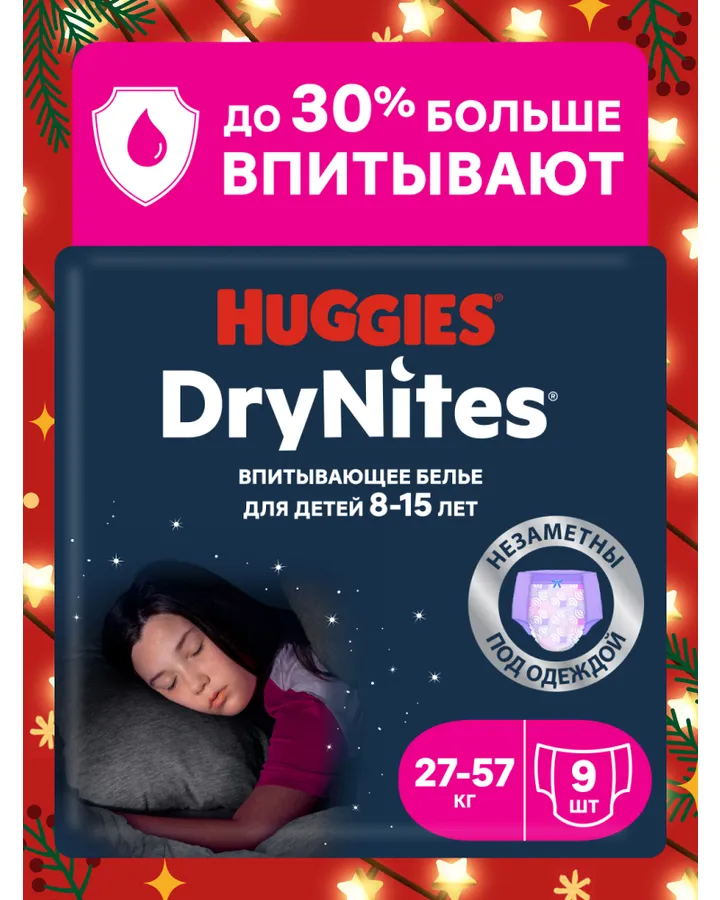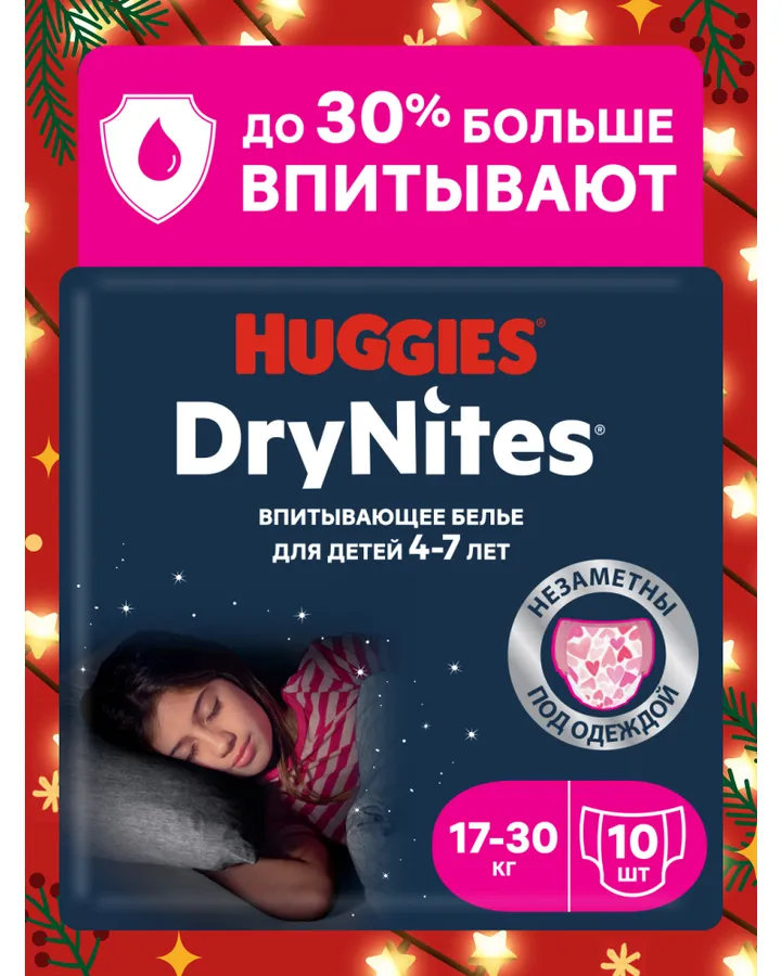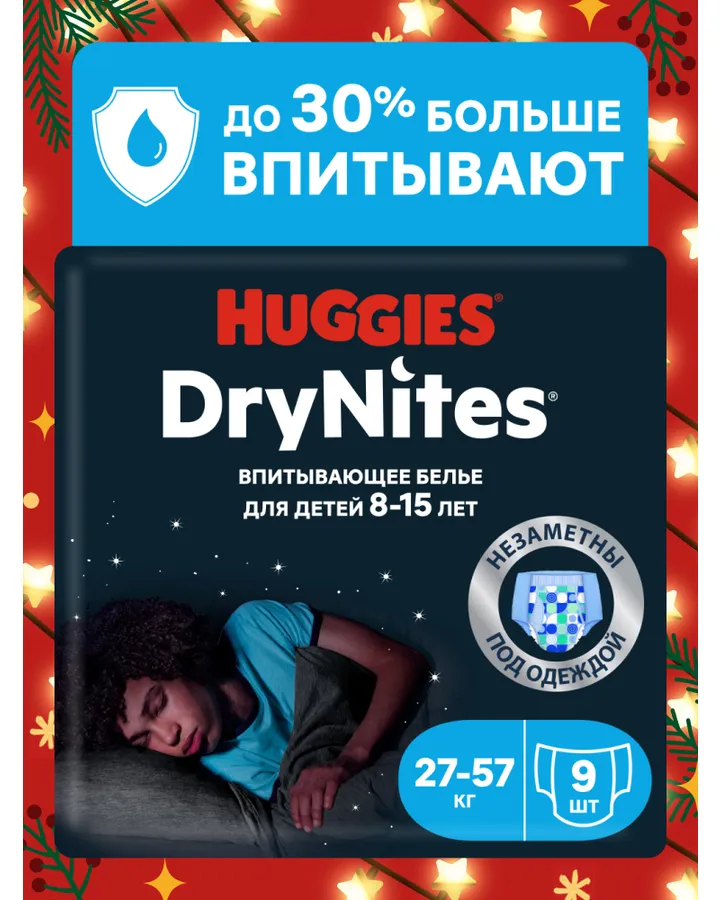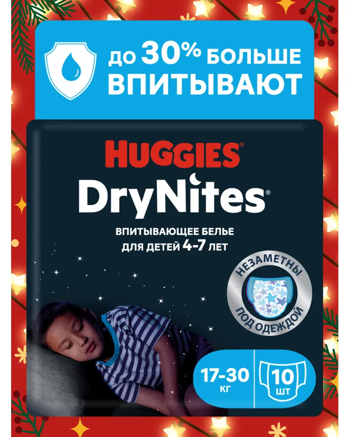 5Трусики Huggies DryNites для мальчиков 7 (27-57 кг) 9 шт.В такой деликатной ситуации справились трусики прекрасно. Ничего не протекает.