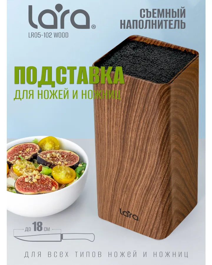 LR05-102 LARA (Wood) Подставка для ножей универсальная (квадрат) Soft touch