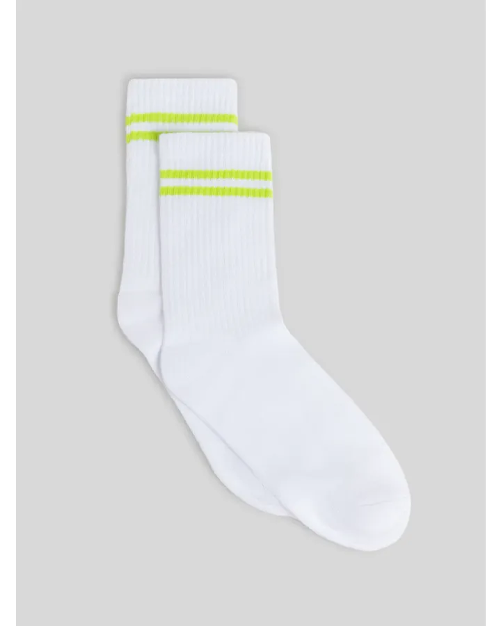 Лучше выбирать высокие носки из хлопка с эластаном, которые плотно облегают ногу и имеют усиленные резинки, чтобы они не спадали во время активных движений.