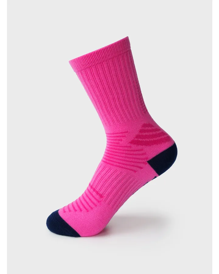 Лучше выбирать высокие носки из хлопка с эластаном, которые плотно облегают ногу и имеют усиленные резинки, чтобы они не спадали во время активных движений.