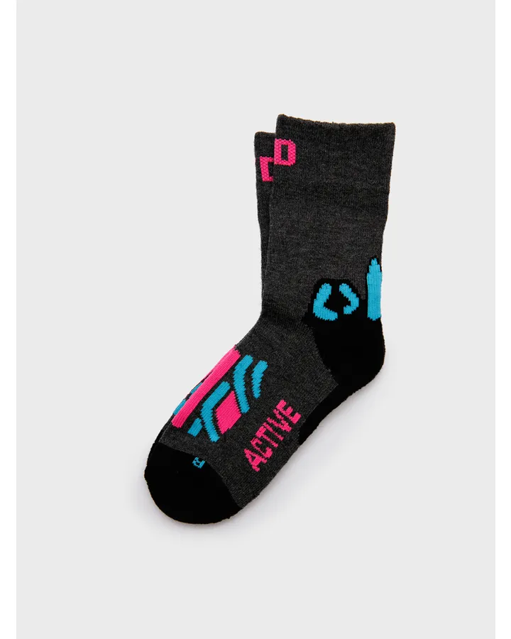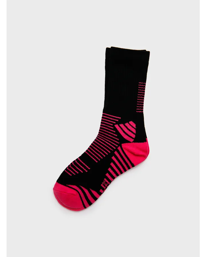 Лучше выбирать высокие носки из хлопка с эластаном, которые плотно облегают ногу и имеют усиленные резинки, чтобы они не спадали во время активных движений.