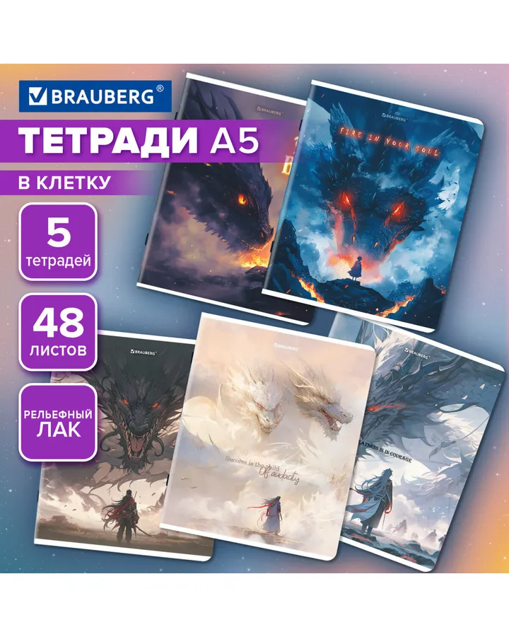 Общая тетрадь Brauberg клетка 48 лист. 5 шт.