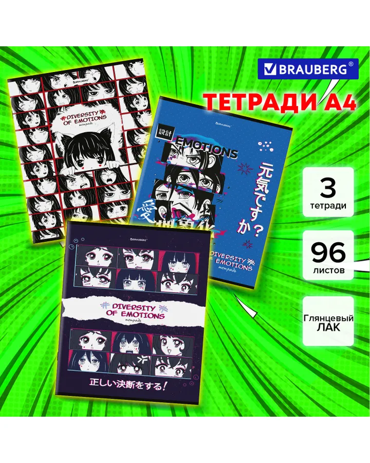 Общая тетрадь Brauberg клетка 96 лист. 3 шт.Отличные тетради, беру не первый раз! 😍