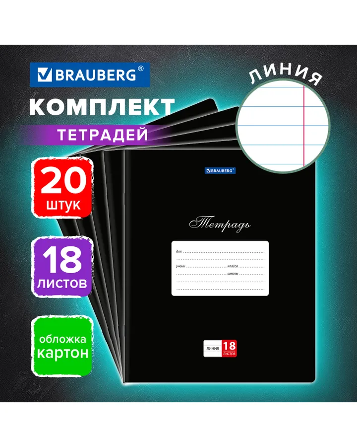 Тетрадь Brauberg линейка 18 лист. 20 шт.