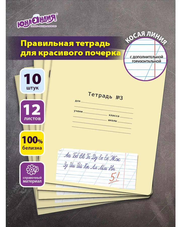 Тетрадь Юнландия косая линейка 12 лист. 10 шт.