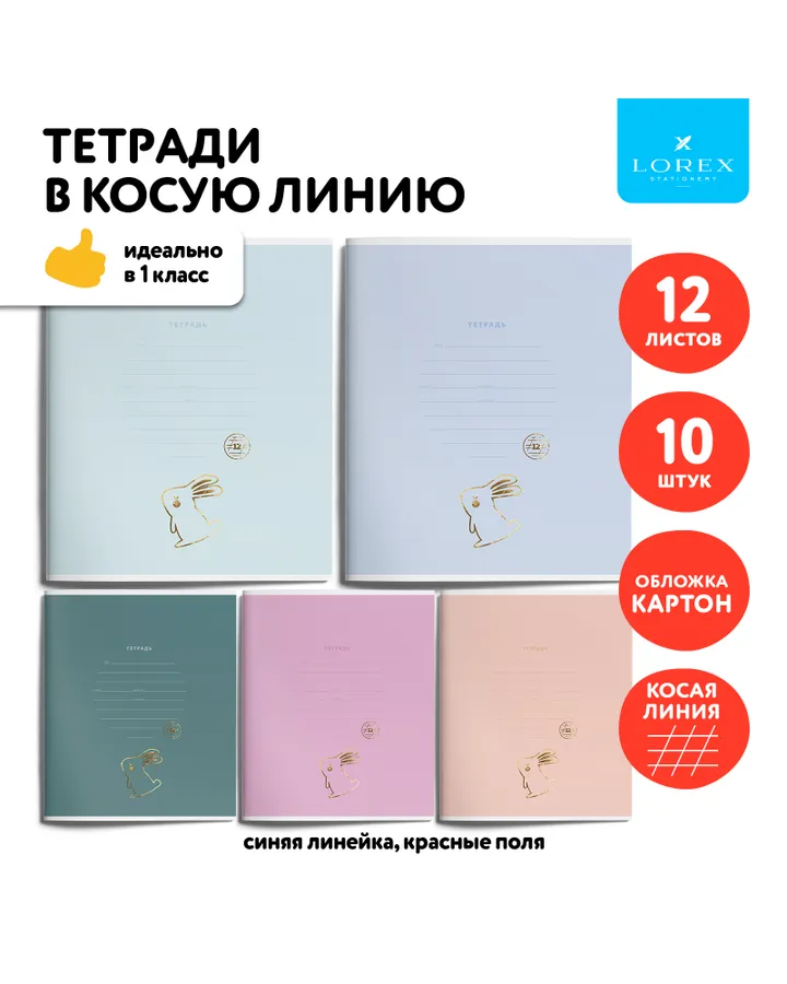 Тетрадь LOREX KIDS косая линейка 12 лист. 10 шт.