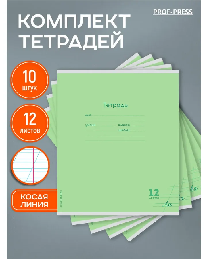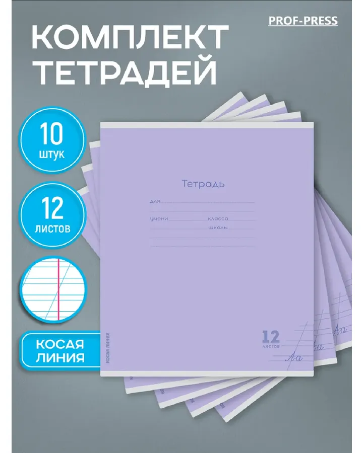 Тетрадь Prof-Press косая линейка 12 лист. 10 шт.