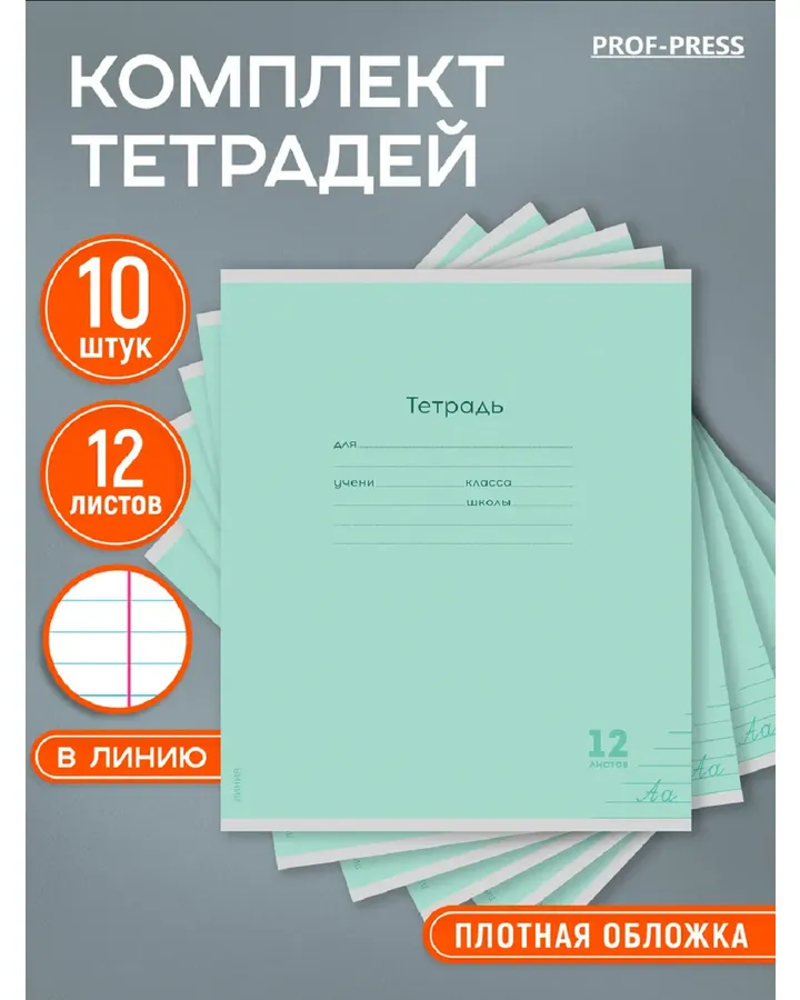 Тетрадь Prof-Press линейка 12 лист. 10 шт.