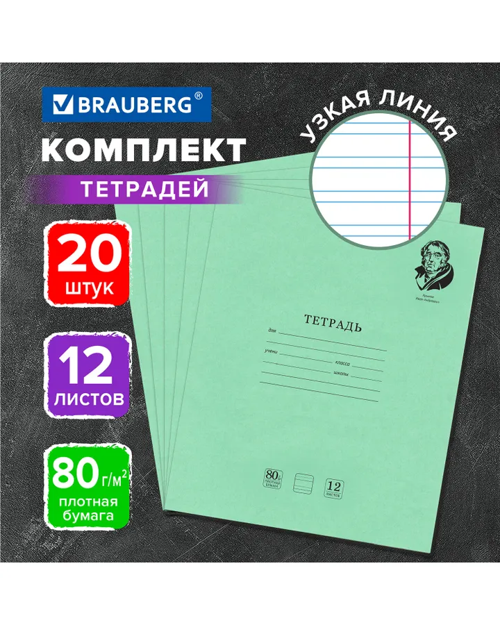 Тетрадь Brauberg косая линейка 12 лист. 20 шт.Отличная