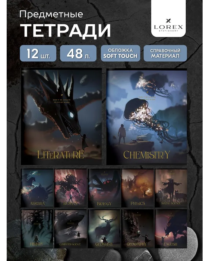 Очень хорошие тетради. Оформление необычное, стильное. Названия предметов на обложке выбиты (вдавлены) и прокрашены золотистой краской. Плотная обложка. На ощупь не глянцевая, а с покрытием типа резинового, антискользящего. Листы белые, гладкие, хорошей плотности. Справочного материала немного - на фарзацах и по листочку впереди и сзади тетради.