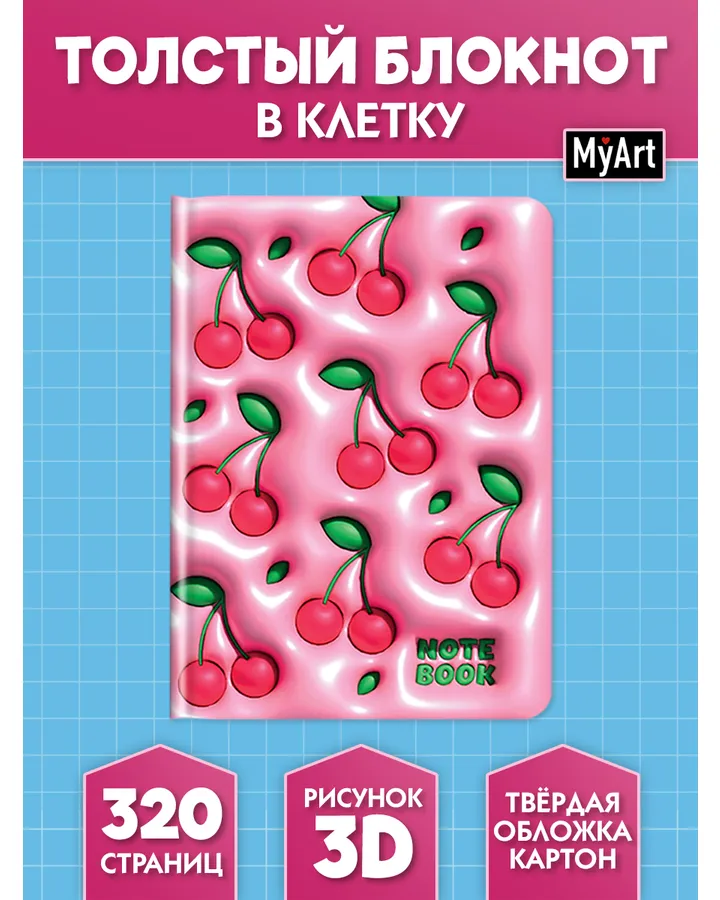 Блокнот Проф-Пресс в клетку А5. 3D Вишенки 160 лист.