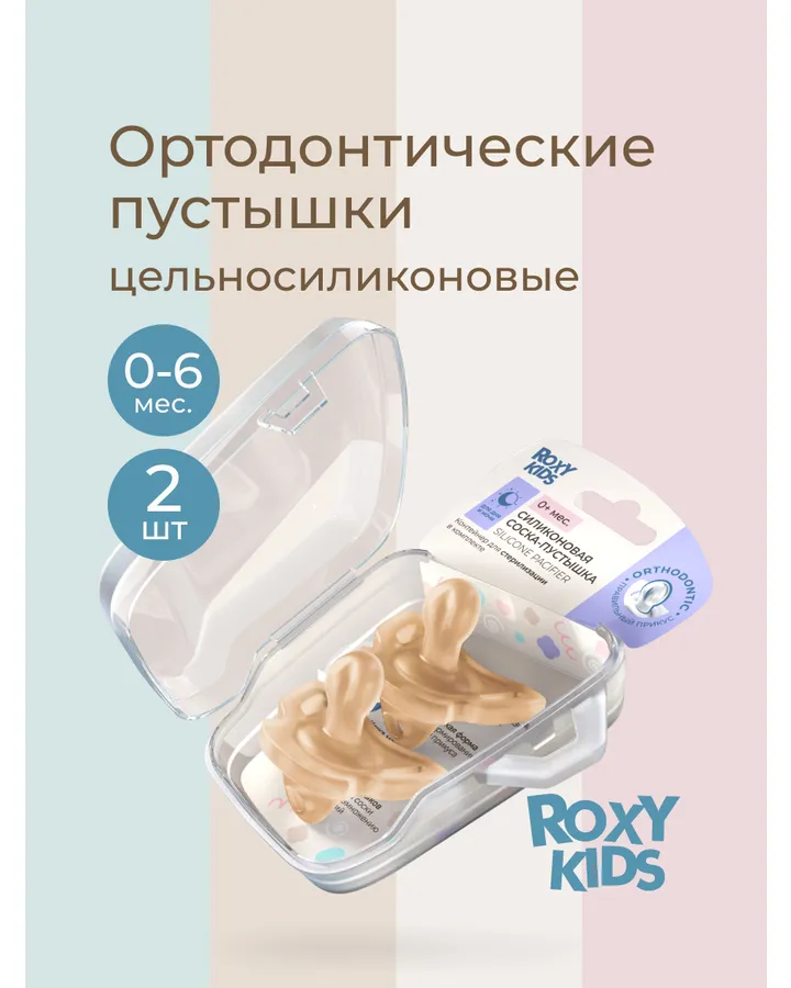 Пустышка ROXY-KIDS силикон ортодонтическая от 0 мес. 2 шт.