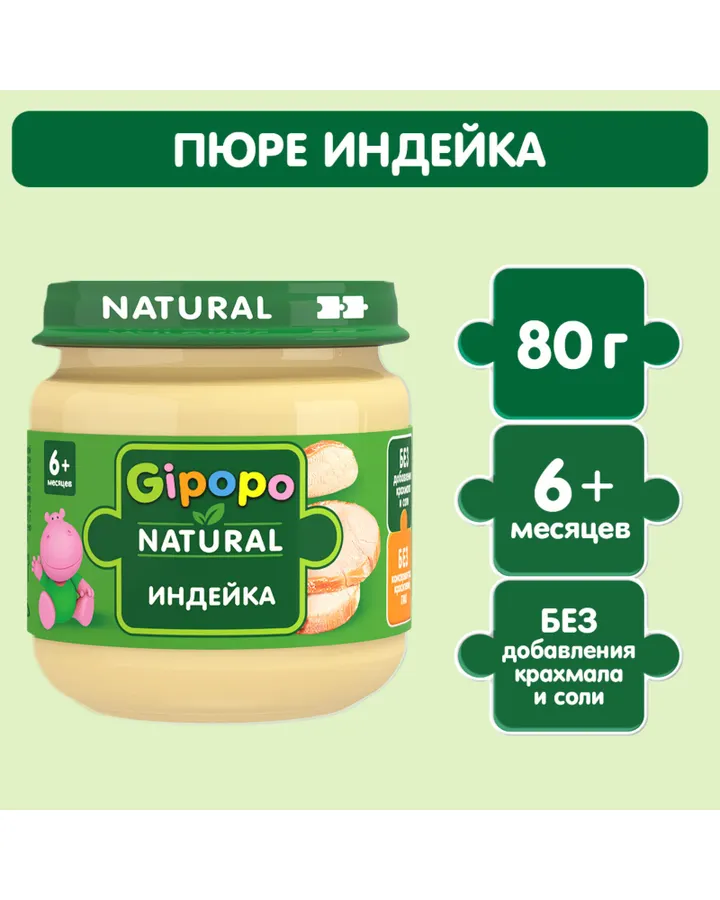 Пюре Gipopo Индейка с 6 мес 80 г