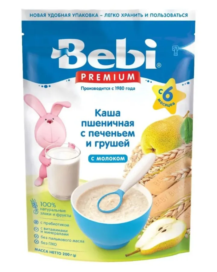 Молочная каша Bebi Premium Пшеничная с печеньем и грушей