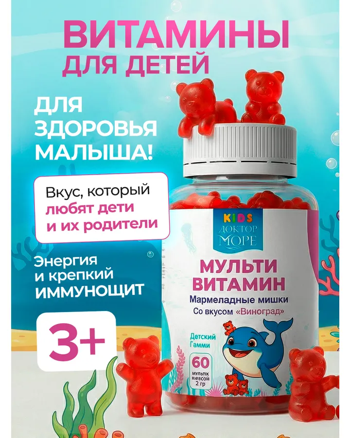 Детский витамин Д3 600 МЕ Доктор Море жевательные капсулы со вкусом вишни 60 капсулРебенку понравились, пьем с удовольствием