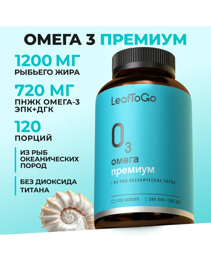 Омега-3 высокой концентрации LeafToGo 720 мг, 120 капсул