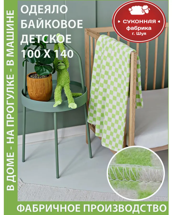 Одеяло Суконная фабрика г. Шуя Салатовый 100 x 140 см хлопокМягкое, теплое и легкое одеяло. После нескольких месяцев использования появились катышки, но это никак не влияет на качество товара. Использовали как подстилку на матрасик в люльку коляски, когда было холодно на улице, потом взяла с собой в поездку к родителям. Сейчас заворачиваем малышку в него, когда несем в баню и после бани, как второй слой после полотенца.