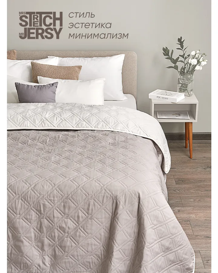 Покрывало Mrs.Stretch Mr.Jersy Серый/молочный 210 x 240 см
