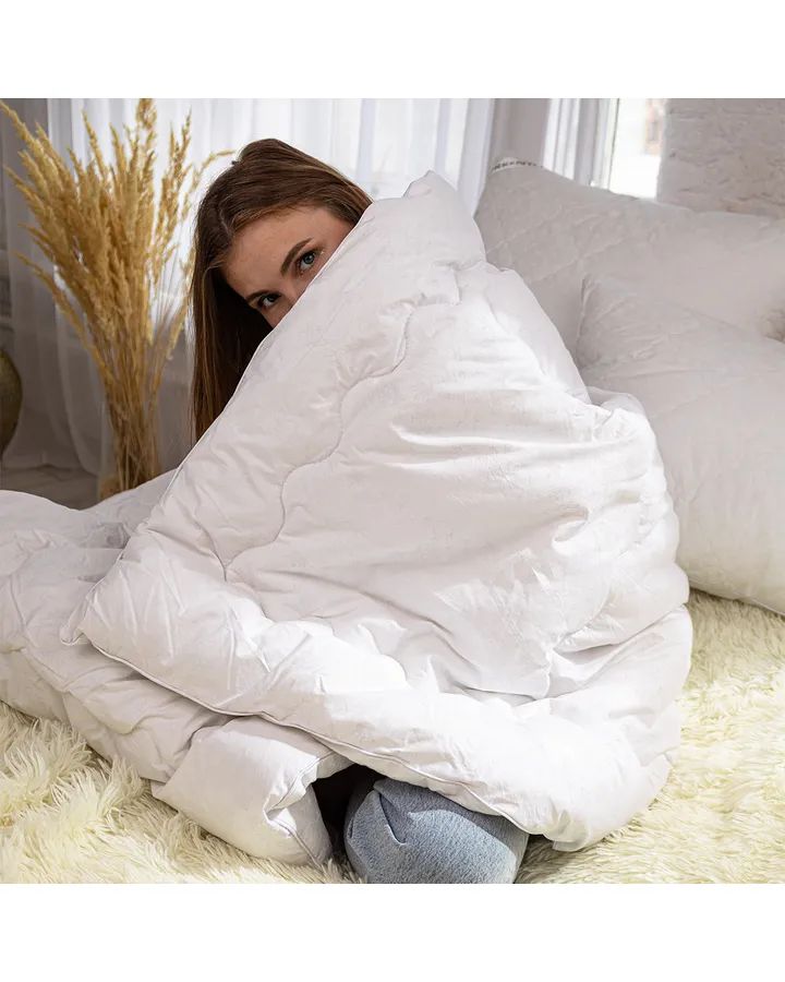 Одеяло SORRENTO DELUXE 172 x 205 см хлопокКрасивое , воздушные и в тоже время тёплое,не потеешь под ним . Кошка сразу оценила ,залезла под одеяло и грелась , сейчас ночью холодно .