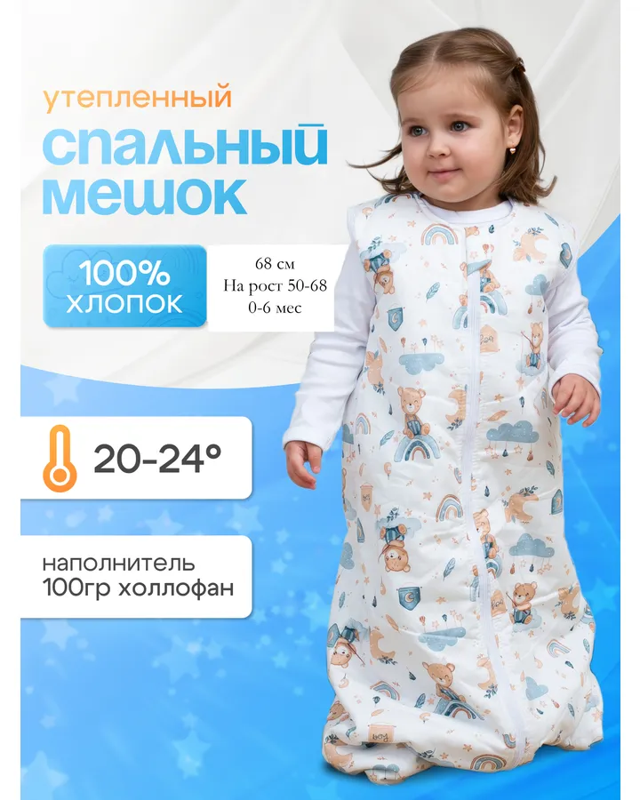 Спальный мешок Lemur Studio Без рукавов 41 x 68 см хлопок