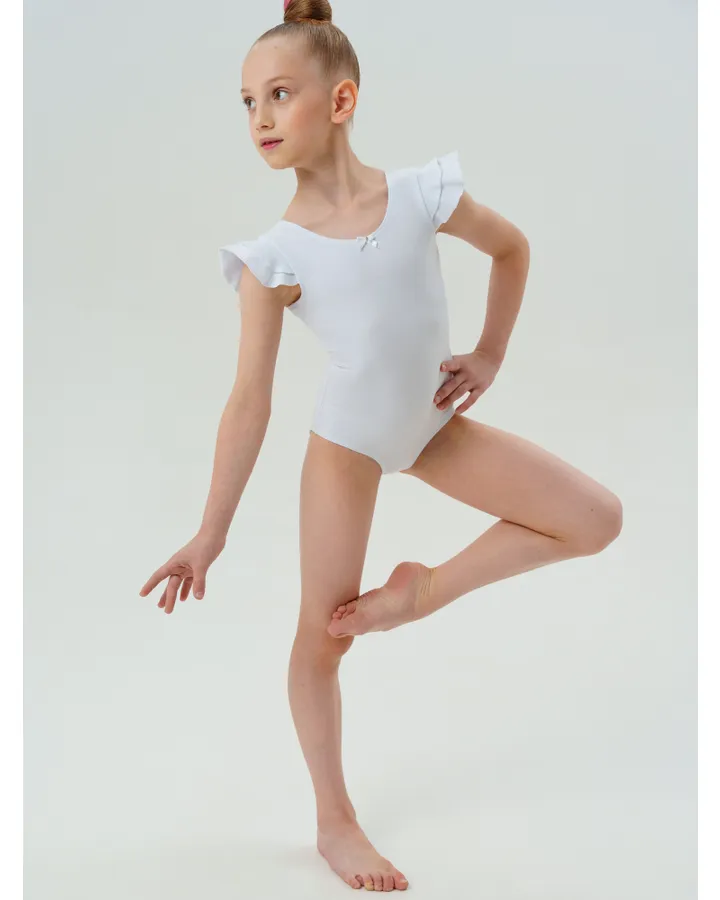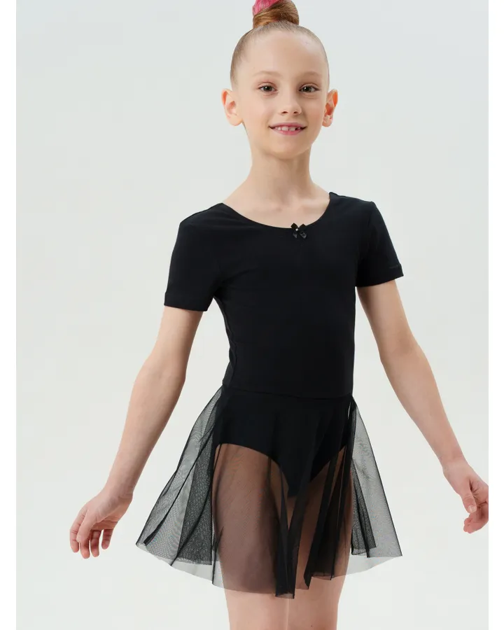Очень хорошо сидит на фигуре. Плотный трикотаж, лёгкая юбочка из сетки. Вырез на спинке глубокий. Трусики хорошо прилегают (хотя девочка худенькая, ничего не топорщиться) .