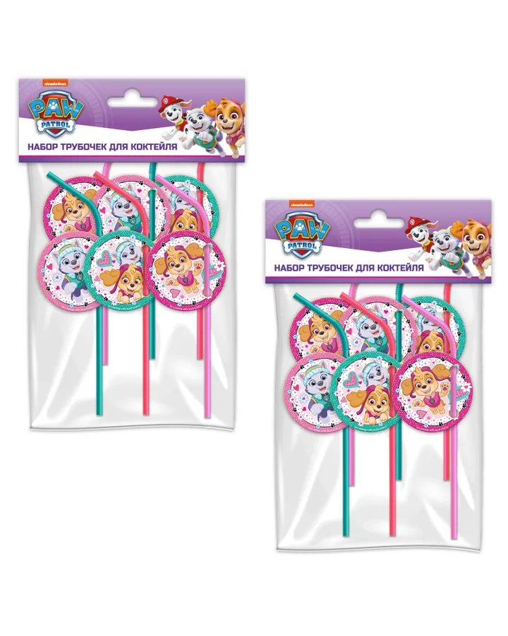 Набор трубочек ND PLAY Щенячий патруль для коктейля 12 шт для девочек