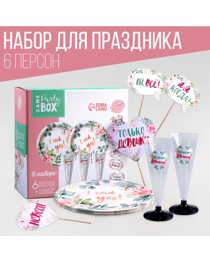 Набор бумажной посуды Страна карнавалия «Свадебный» 6 тарелок 6 стаканов