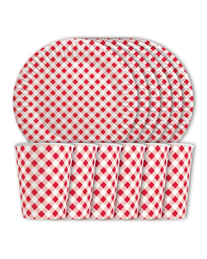 Набор одноразовой посуды ND PLAY Полоски стаканы 250мл тарелки 23см по 12шт