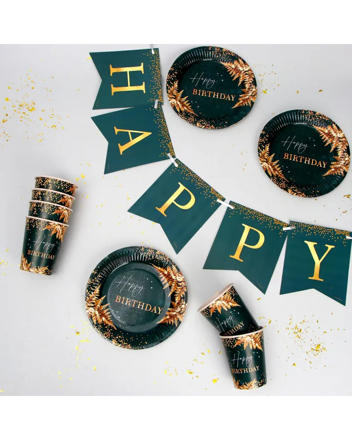Набор бумажной посуды Страна карнавалия Happy Birthday цвет зелёный 6 тарелок 6 стаканов 6 колпаков