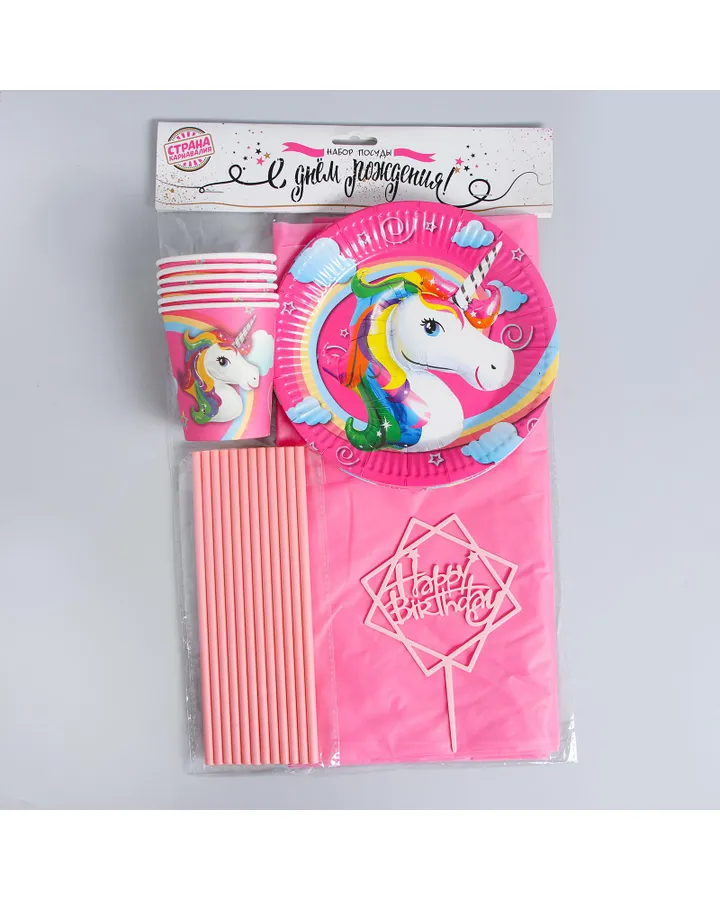 Набор посуды Страна карнавалия одноразовый С Днём Рождения единорог цвет розовый