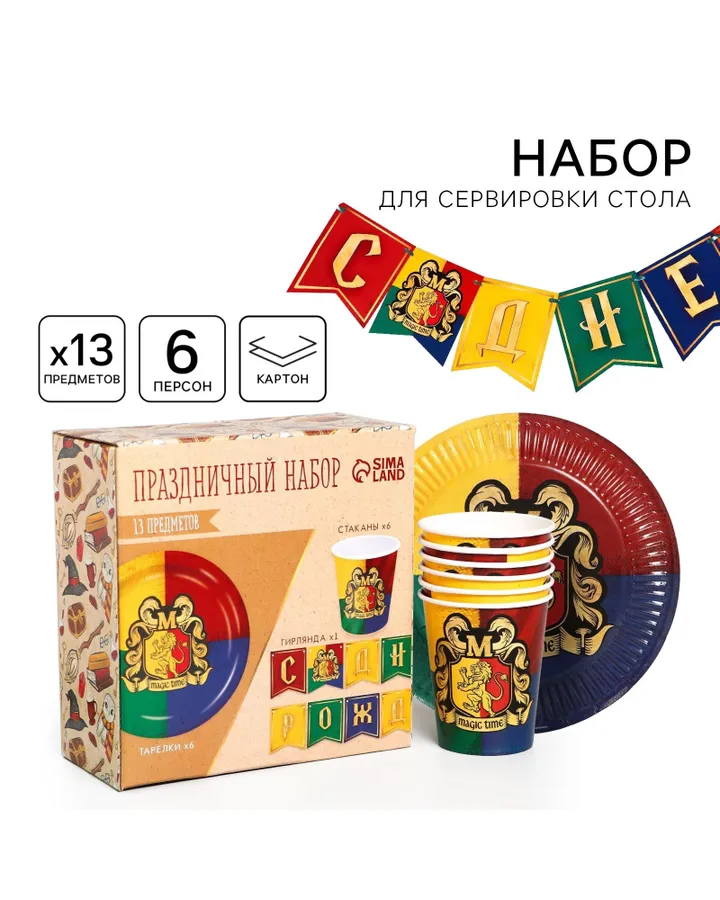 Набор бумажной посуды Страна карнавалия «Волшебного дня рождения!» 6 тарелок 6 стаканов