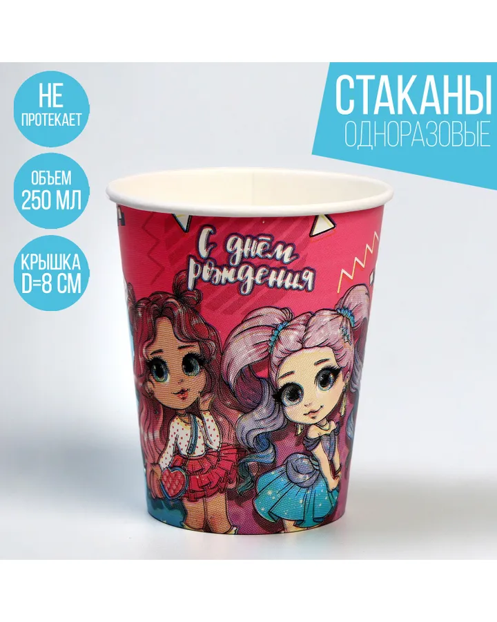 Стакан Страна карнавалия бумажный «Красотка» 250 мл набор 6 штук