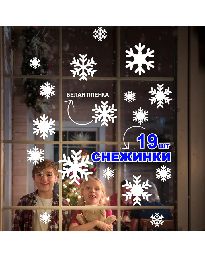 Интерьерная наклейка на стену Woozzee Снежинки белые новогодние для декора и украшения комнаты