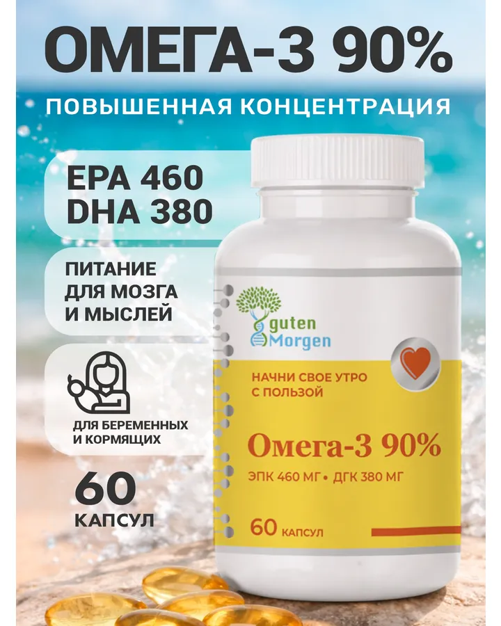 Омега 3 90% рыбий жир Guten Morgen для мужчин и беременных и кормящих женщин