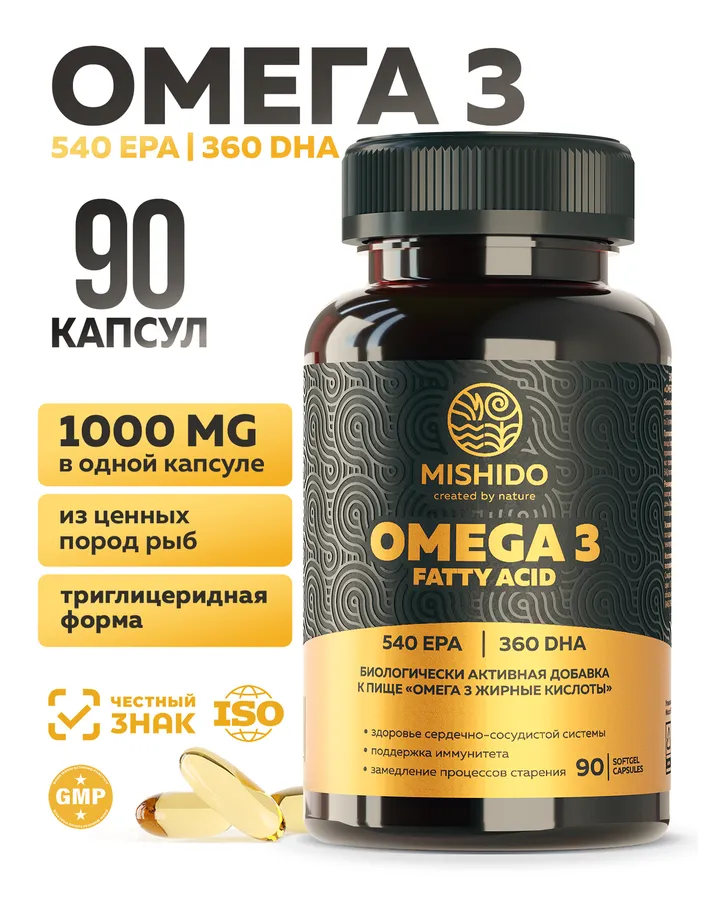 БАД к пище MISHIDO Омега 3 жирные кислоты 90 капсул массой 1360мг