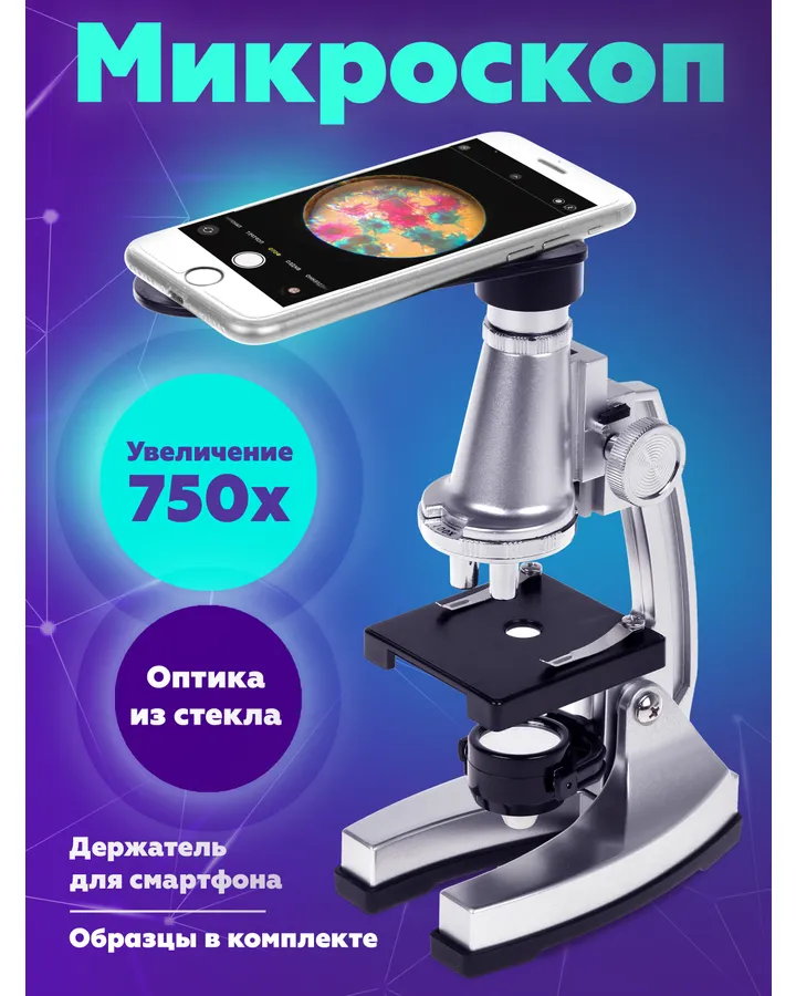 Отличный микроскоп.Ребенок доволен,родители тоже.Интересно всем.В комплекте есть стекла,мы на них положили капельку банана,всё видно. Надо только правильно настраивать его и иметь понимание «далеко» и «близко». Я в восторге.👍🏻 Нужны две батарейки,но можно светить фонариком на стекло и будет тот же эффект,а днем от солнечного света всё видно. Набор хороший,есть как пустые стекла,так и готовые части бабочки,живые бактерии,соль👍🏻 На фото- круглые кольца-банан,квадраты-соль,3фото-крылья бабочки(были в комплекте с микроскопом).